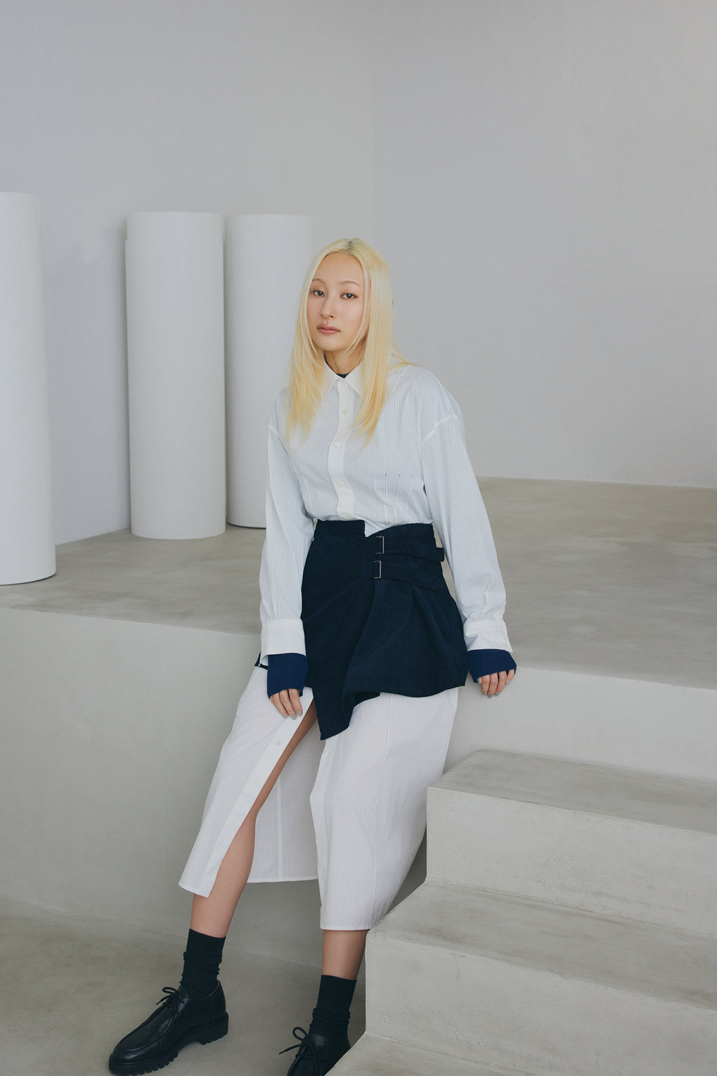 • TRAVEL SHIRT DRESS/ WHITE STRIPE
