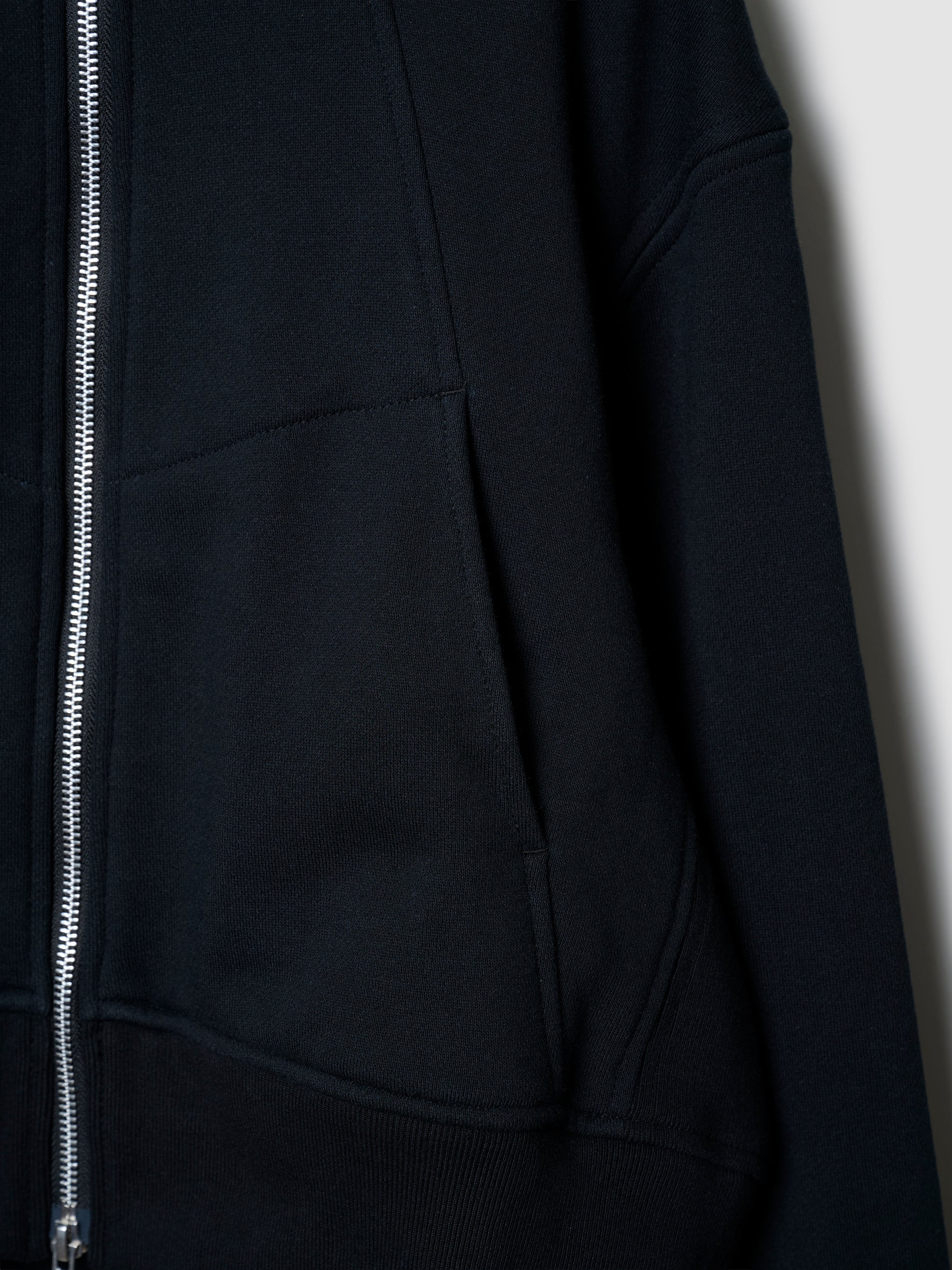 ショート丈ながら適度にボリューム感があり、どんなボトムスともバランスよくスタイリングできるフルジップジャケット。フロントのシーム上にポケットを配し、襟は顔を包むような高めのデザイン。袖下から身頃に続くリブのガセットと、ダーツの入ったボリュームある袖も特徴的。しっかりとした厚手の生地だが、裏起毛ではないのでオールシーズン着用可能。