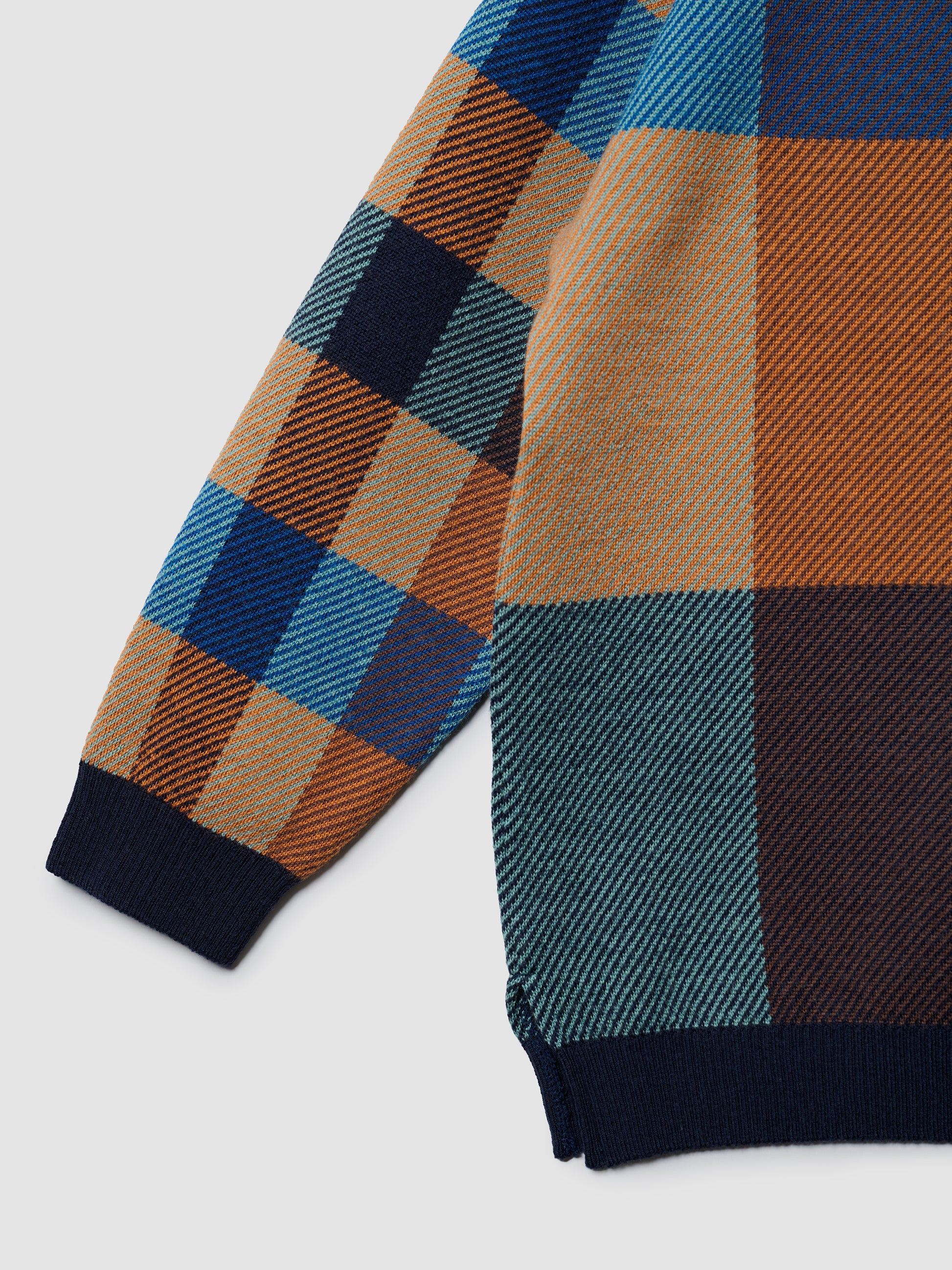 -Oversized v-neck sweater knitted in plaid